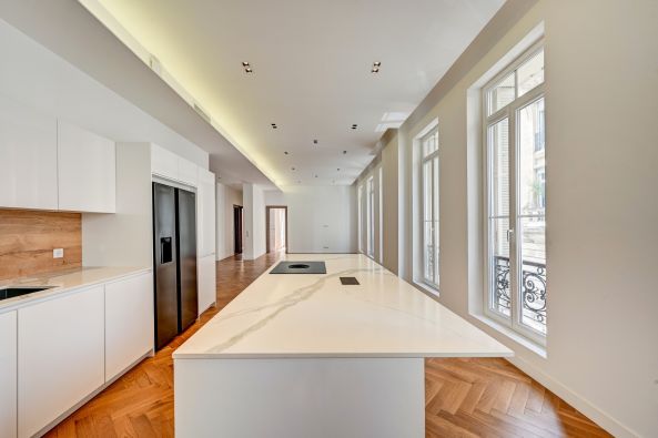 Marseille 8th, Carré d'Or / Golden Square - Furnished flat rentalIn the Carré d’Or neighborhood, on the second floor of a beautiful building, superb flat entirely renovated and furnished of approximately 130 sqm for rent, Marseille 8th. It benefits from beautiful volumes and the charm of the old (herringbone hardwood floors, high ceilings) mixed with more contemporary finishes.