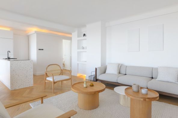 Located in a sought-after building near the Cercle des Nageurs, the apartment impresses with the quality of its renovation and the refinement of its features: herringbone parquet flooring, custom-designed kitchen, and high-end materials throughout.