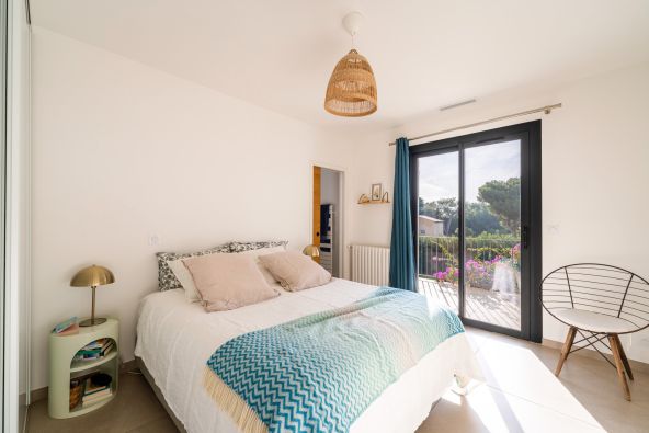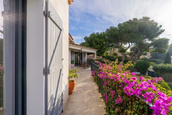 Just 300 meters from the beach, within a private Barqueroute residence in Carry-le-Rouet, discover this 1965 villa fully renovated in 2022 in a contemporary style, harmoniously blending the charm of the old with modern comfort.