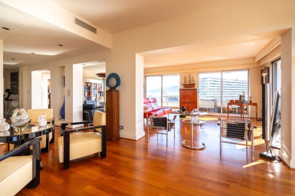 Ideally situated in the heart of the prestigious Carré d'Or, this exceptional apartment captivates with its elegance, generous spaces, and high-end features. Light-filled and cross-ventilated, it opens onto a superb 100 sqm terrace offering an unobstructed view of the sea and a tranquil green oasis.